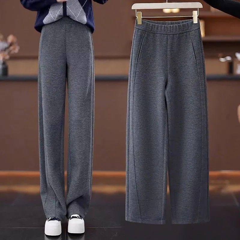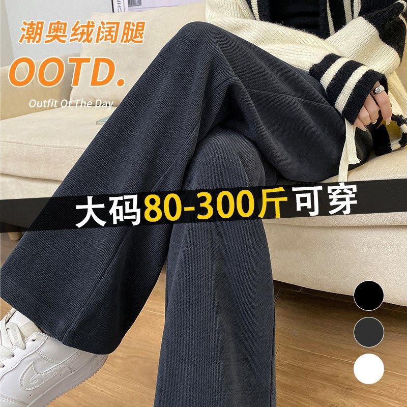 大码女装显腿长百搭显瘦羊阔腿裤秋冬新加绒窄版直筒运动休闲长裤
