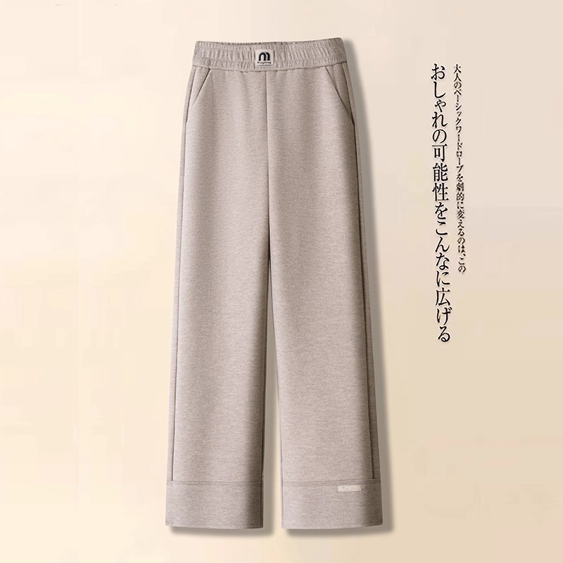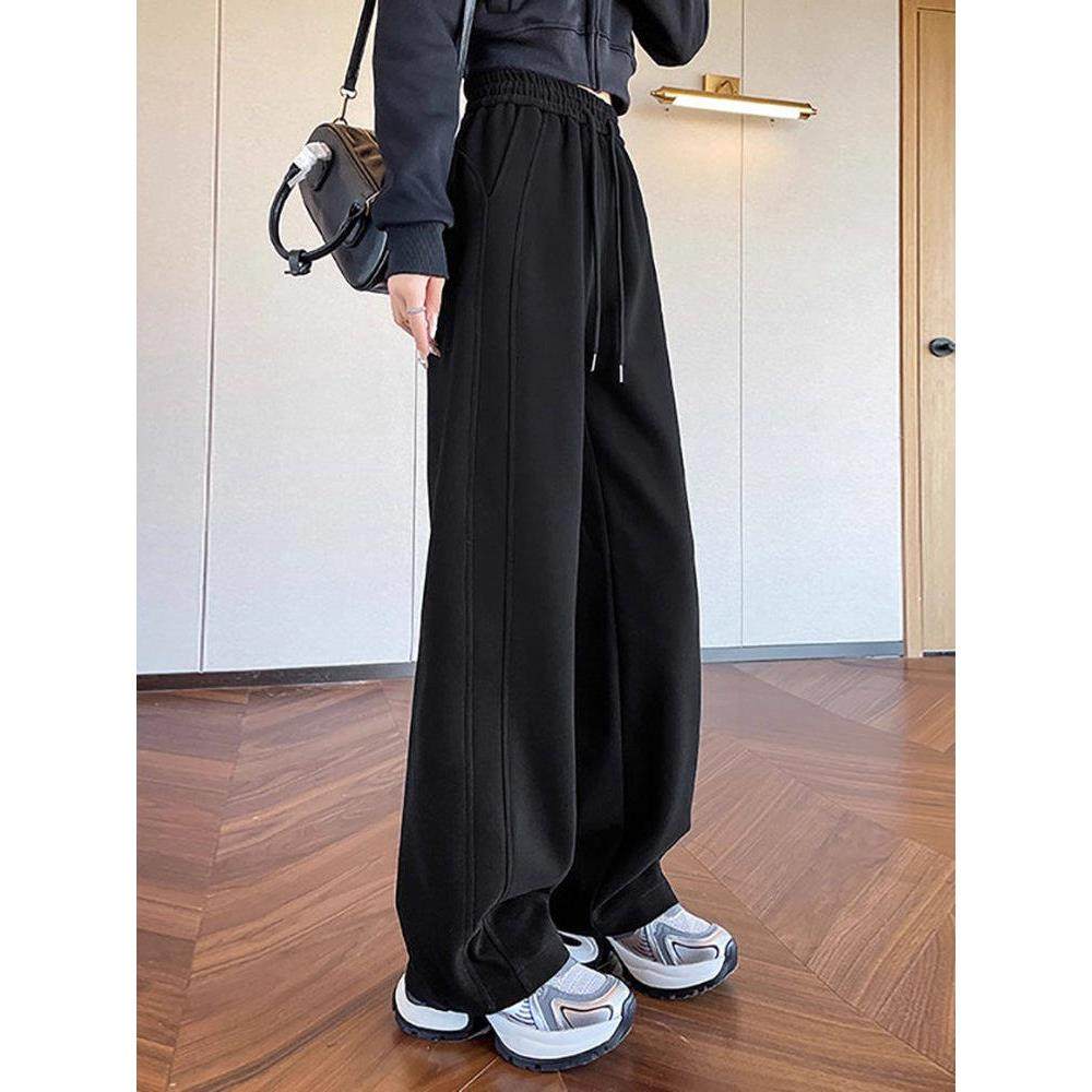 MissWiss直筒裤子女2025冬新款长裤阔腿垂感加绒保暖运动休闲裤TF