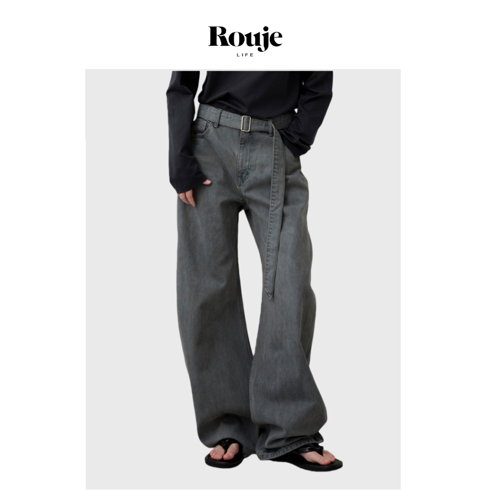 【现货】Rouje Life牛仔阔腿裤秋冬高腰显瘦可拆卸腰带直筒休闲裤