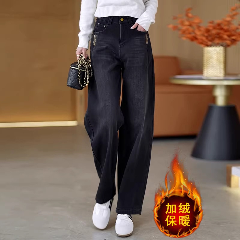 (加绒/不加绒)秋冬新款青蓝阔腿牛仔裤女高腰显瘦长裤子1062
