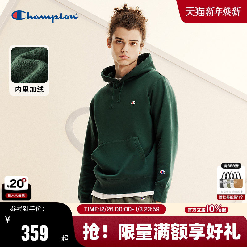 Champion冠军连帽卫衣男秋冬加绒红色情侣美式风女宽松休闲秋潮牌