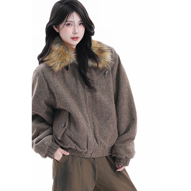 kk soul美式复古毛绒翻领秋冬棉服外套女冬季设计感加厚保暖棉袄