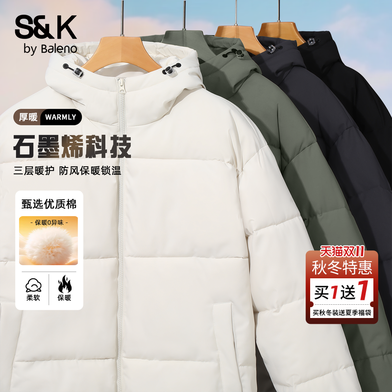 班尼路S&K棉服男款冬季青少年加厚保暖棉袄石墨烯高级发热外套男A
