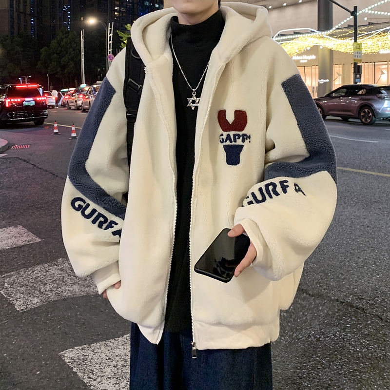 羊羔绒外套男士冬季加绒加厚保暖棉袄潮流学生宽松立领情侣棉衣服