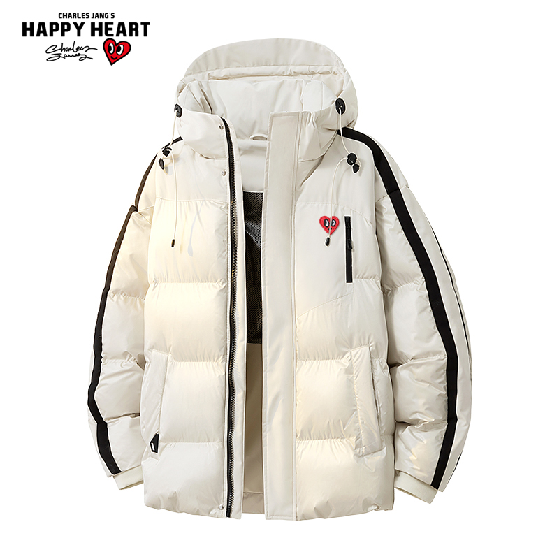 查尔斯桃心 石墨烯条纹棉服男冬季新款连帽加厚保暖棉袄情侣外套