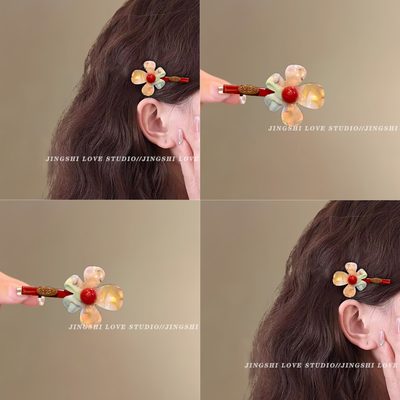 冰糖山楂~花朵发夹女边夹甜美前额发卡一字刘海夹子头饰2025新款