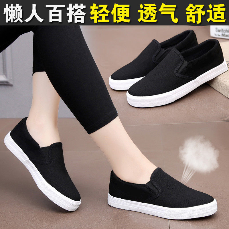 老北京布鞋女夏新款百搭韩版平底懒人鞋女一脚蹬休闲鞋学生帆布鞋