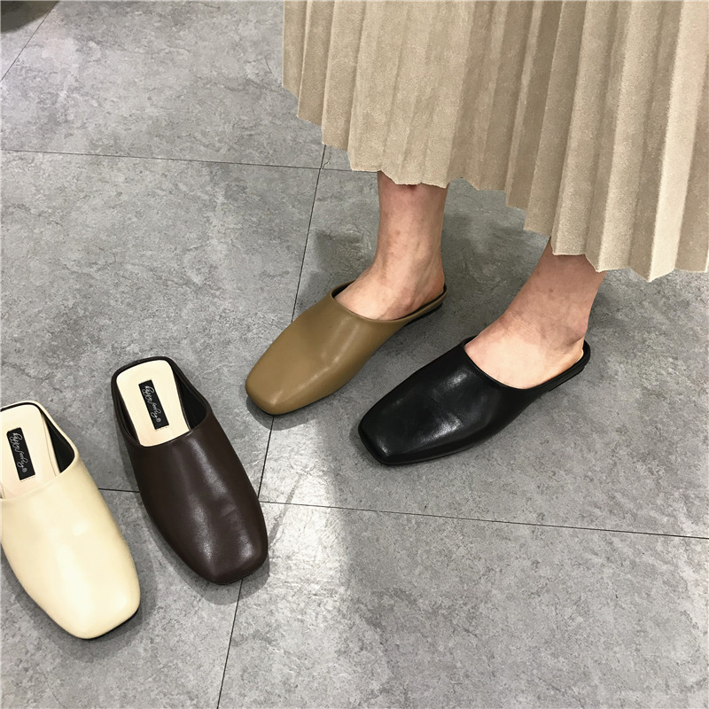 包头半拖鞋女平底跟一脚蹬懒人鞋百搭韩版学生方头穆勒单鞋新款秋