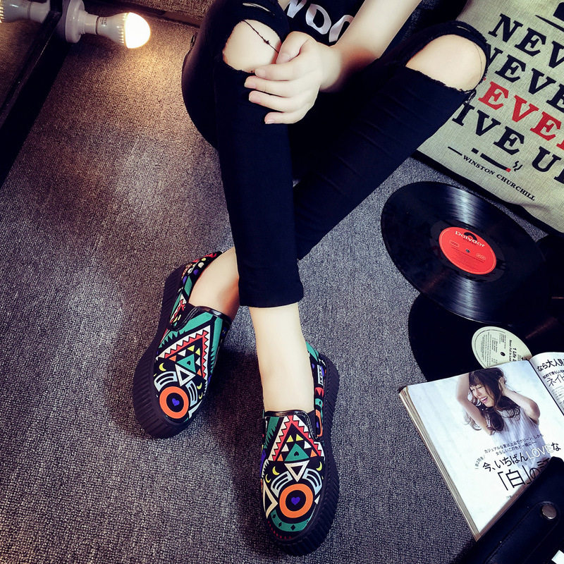新品春季涂鸦帆布鞋m女鞋平底一脚蹬懒人鞋学生夏季韩版百搭学生