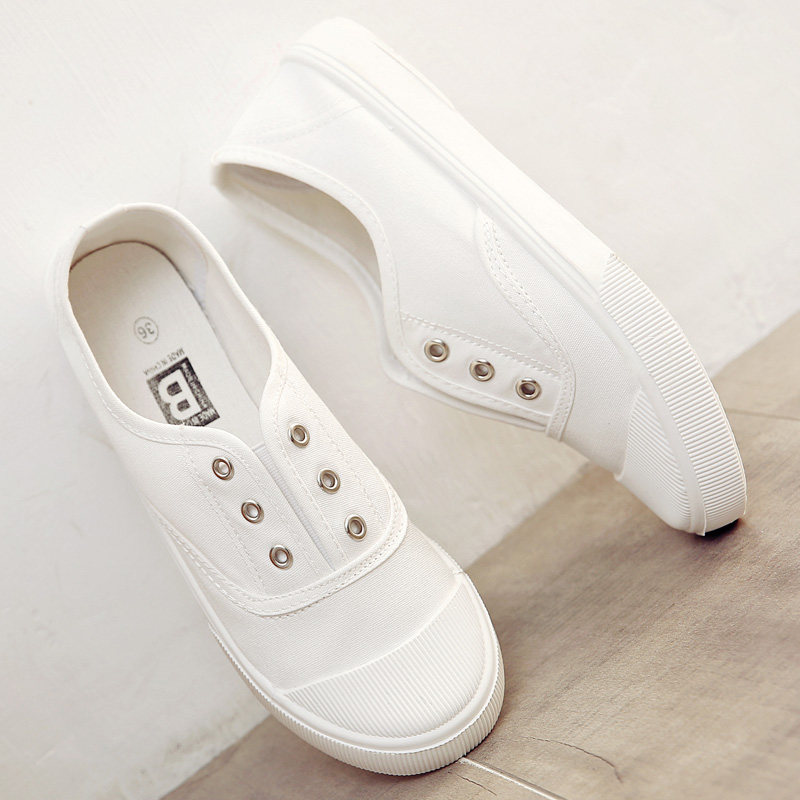 韩版帆布鞋女春季百搭厚底增高一脚蹬懒人鞋学生平底休闲小白鞋女