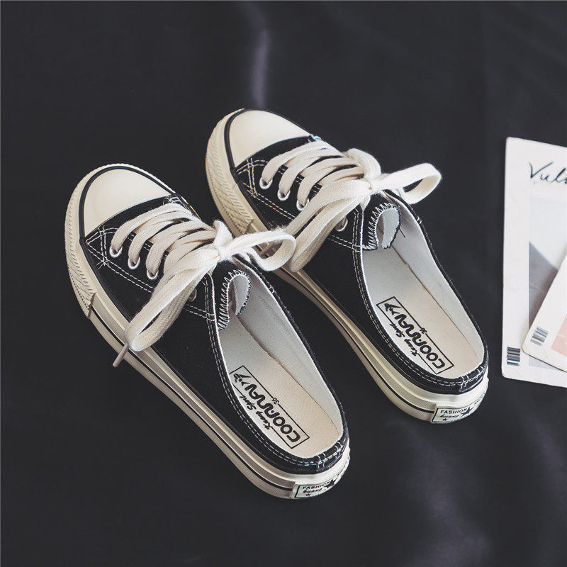 帆布拖鞋ins夏季半小白鞋女韩版学生无后跟一脚蹬懒人鞋百搭平底