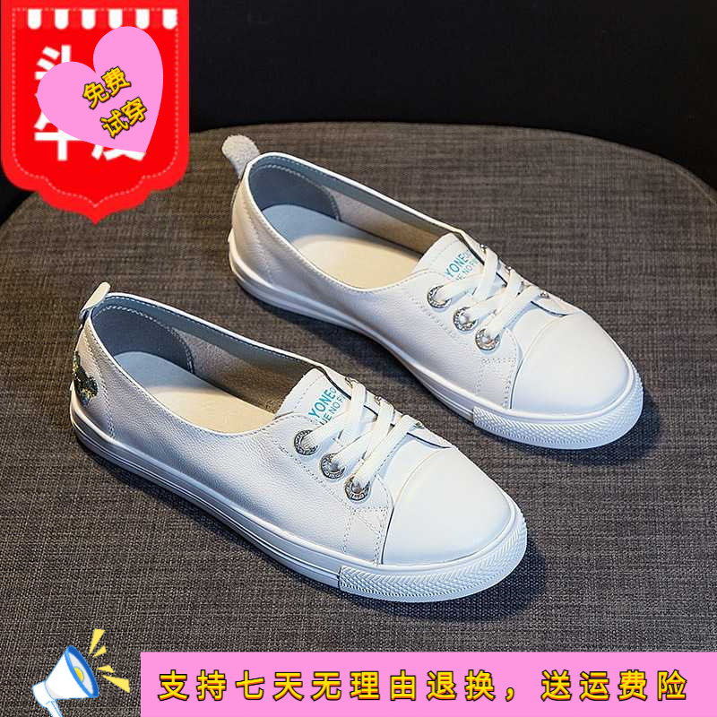 2026新春款韩版百搭一脚蹬女鞋平底懒人学生鞋软底真皮薄款小白鞋