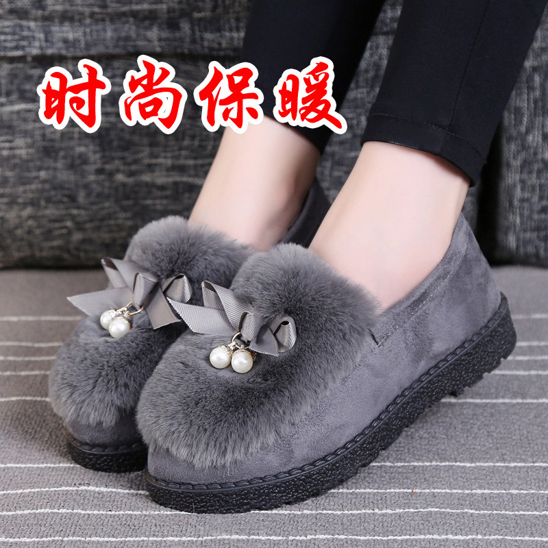 豆豆鞋女冬季新款韩版平底棉鞋女保暖加绒懒人学生外穿百搭毛毛鞋