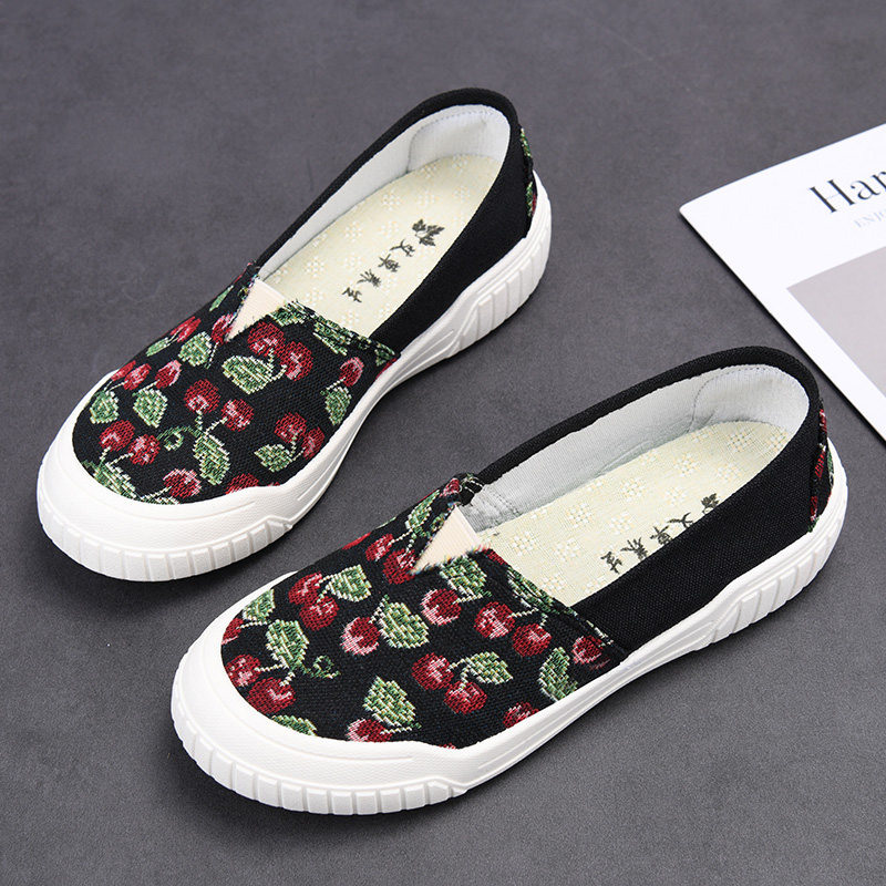 帆布鞋女低帮百搭平底学生鞋刺绣牛筋底套脚韩版懒人鞋老北京布鞋