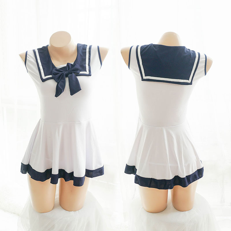 连体衣学生装cos死水库美女短袖泳衣U领露胸诱惑制服1628
