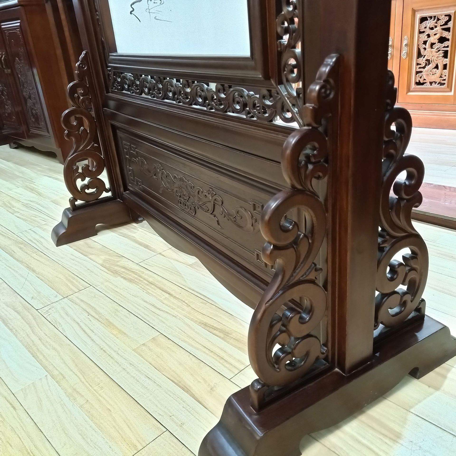 东阳木雕红木屏风隔断玄关客厅实木屏风 座屏插屏 香樟木花开富贵