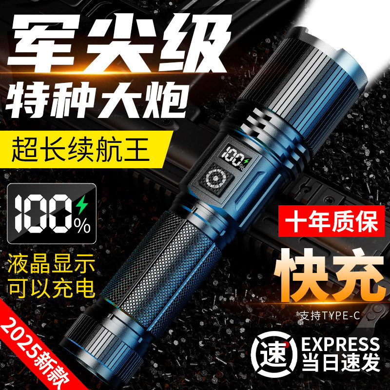 手电筒2025新款强光充电式大功率户外超亮远射超长续航大容量家用