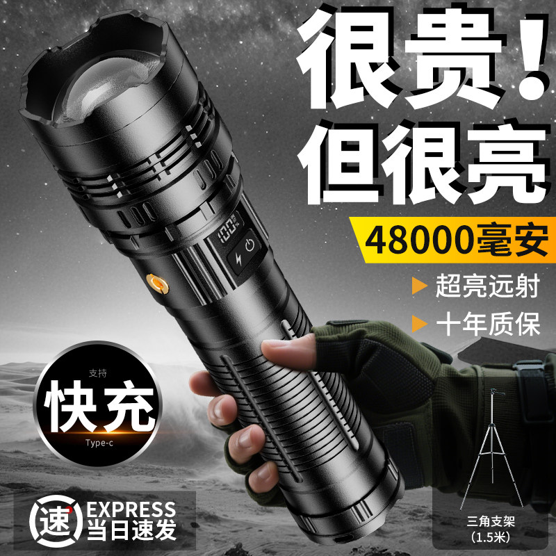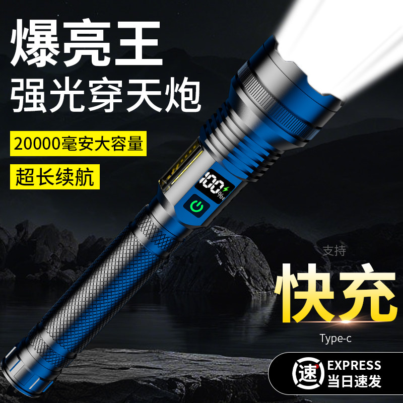 手电筒2026新款强光充电式户外远射超长续航大容量远射大功率家用