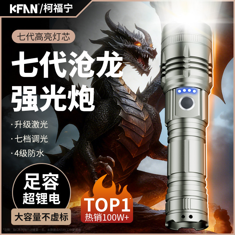 KFAN超亮手电筒2025新款强光充电小型便携激光多功能户外远射家用