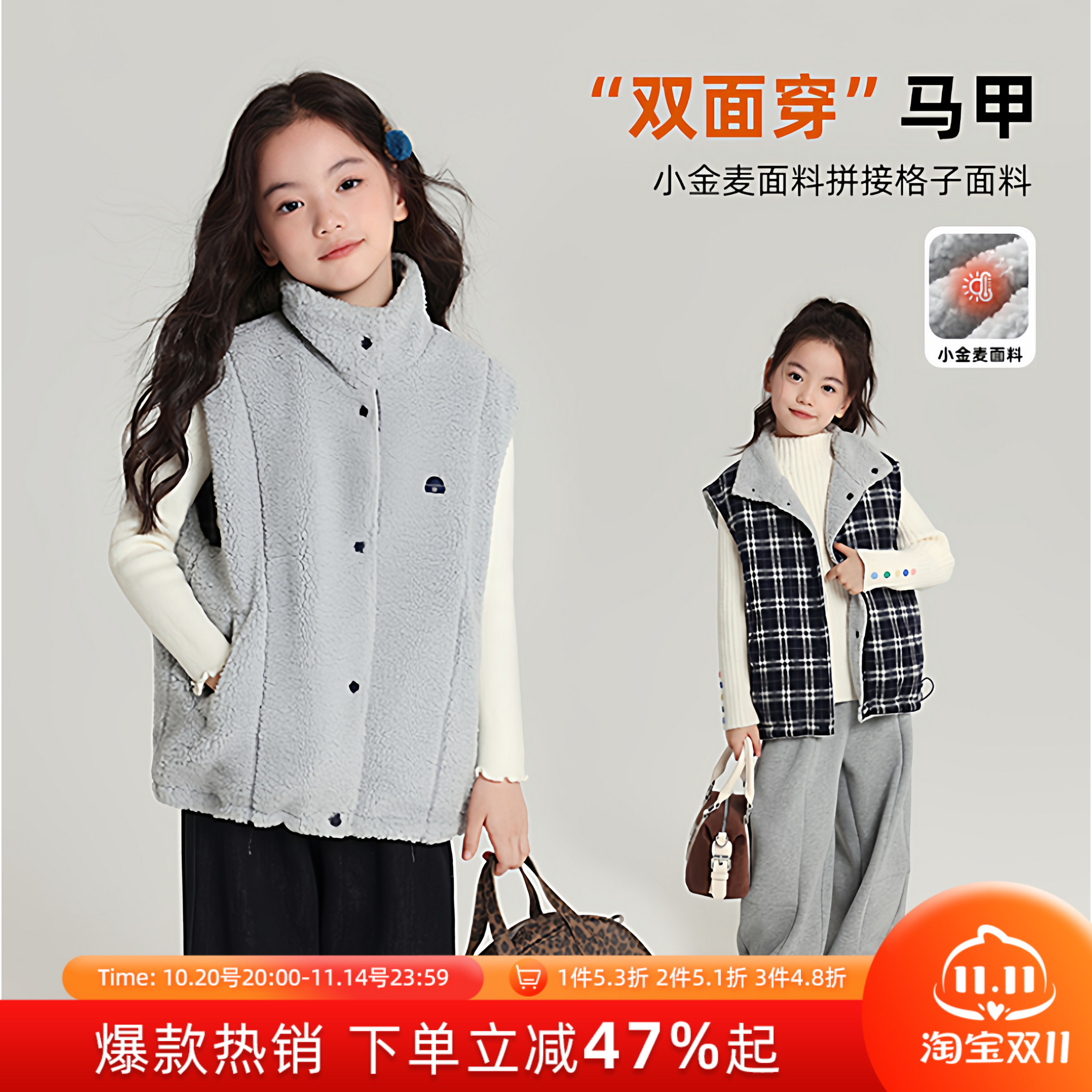 布丁哈鲁童装冬装女童百搭上衣2025秋冬新款儿童休闲双面穿马甲