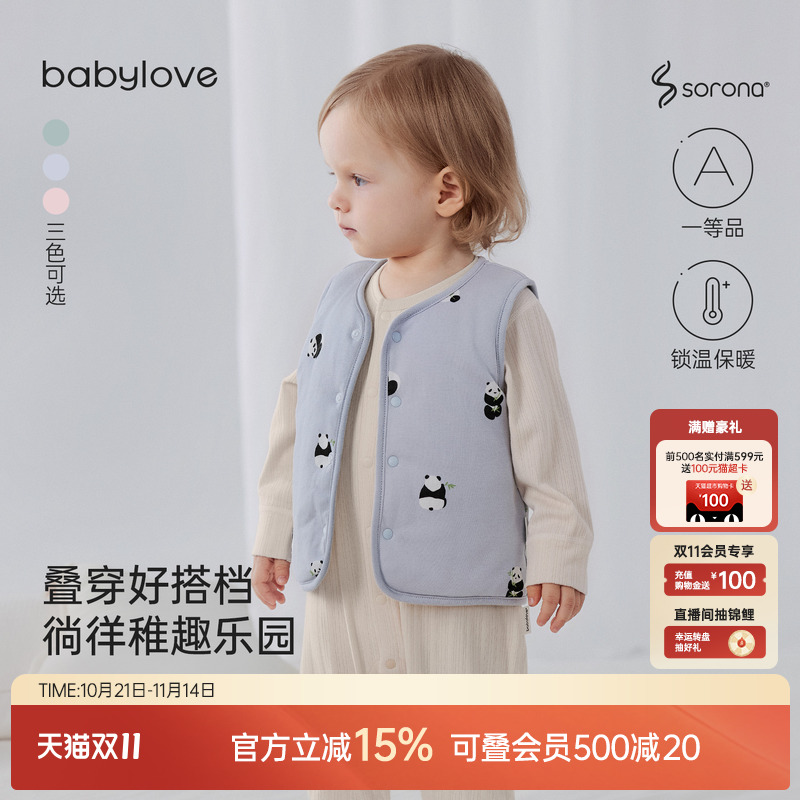 babylove婴儿马甲夹棉秋冬外穿保暖坎肩男女宝宝纯棉棉服百搭上衣