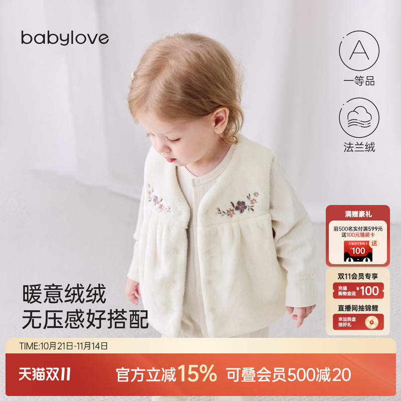 babylove女宝宝马甲秋冬法兰绒马夹外出刺绣百搭甜美婴儿保暖背心