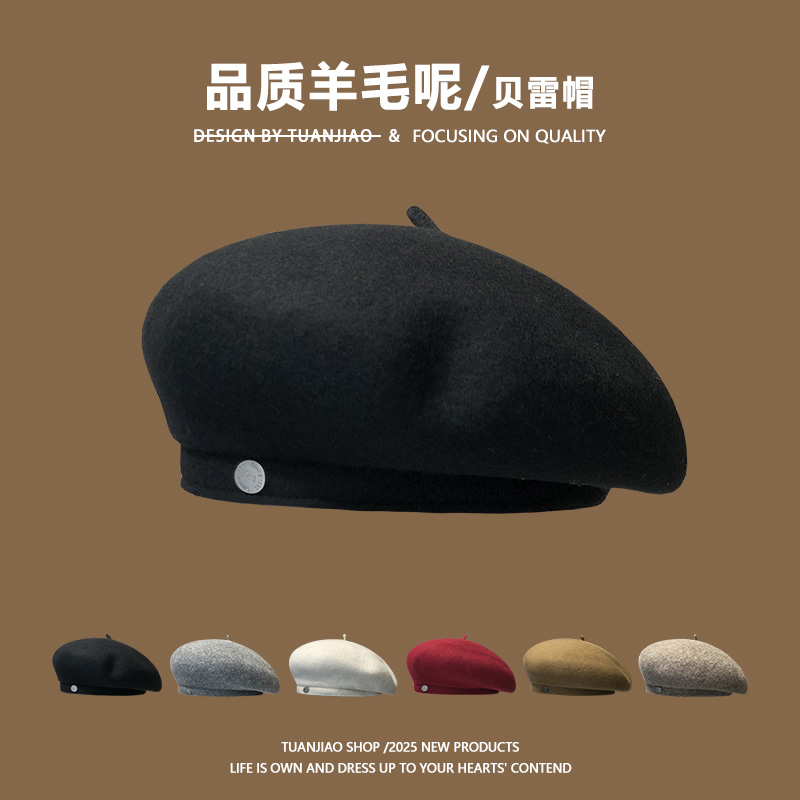 - 礼帽女秋冬毛呢帽