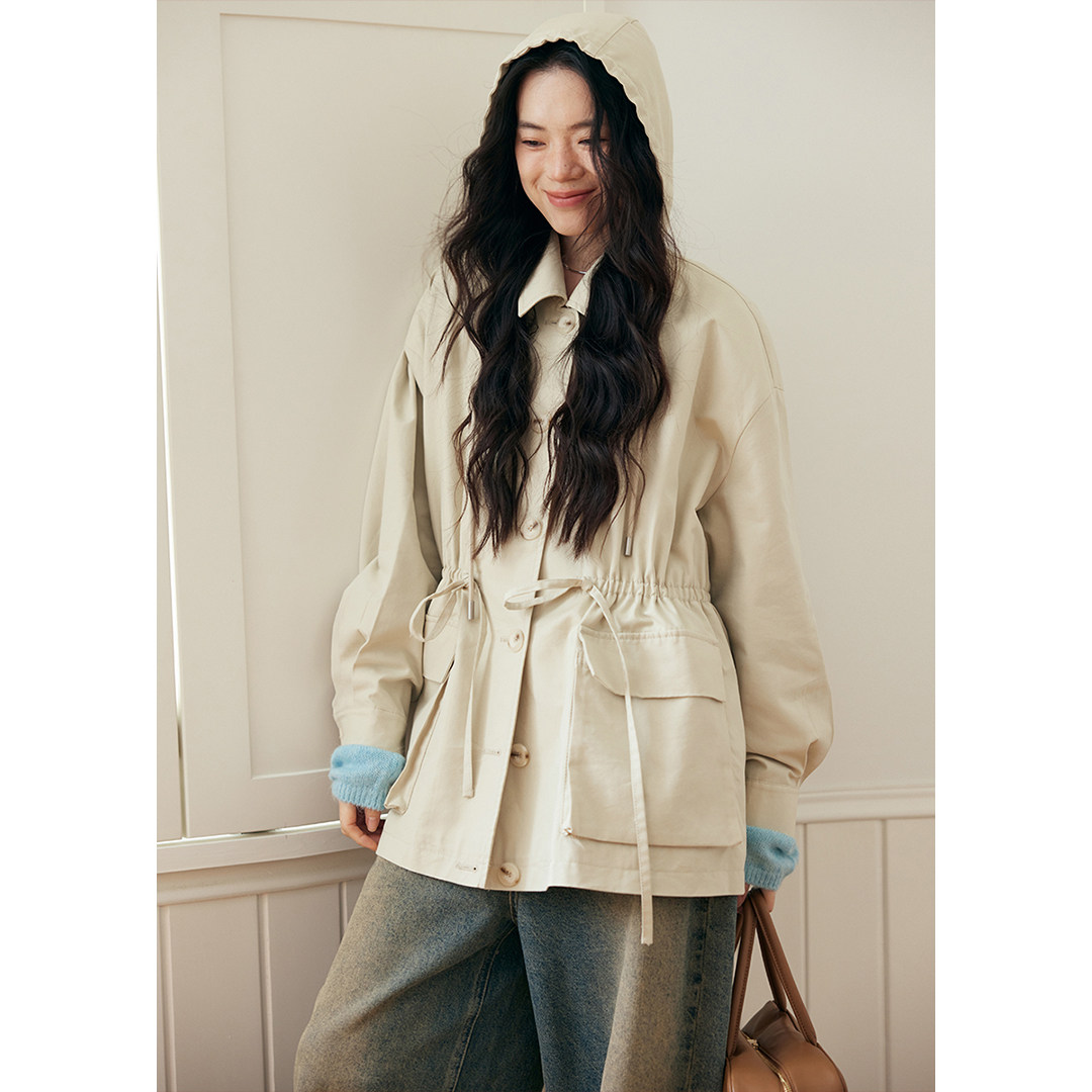 - 宽松连帽中长款风衣