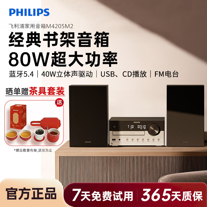 飞利浦家用音响TAM3205蓝牙5.4CD播放机组合音箱M2进阶版HiFi 2.0