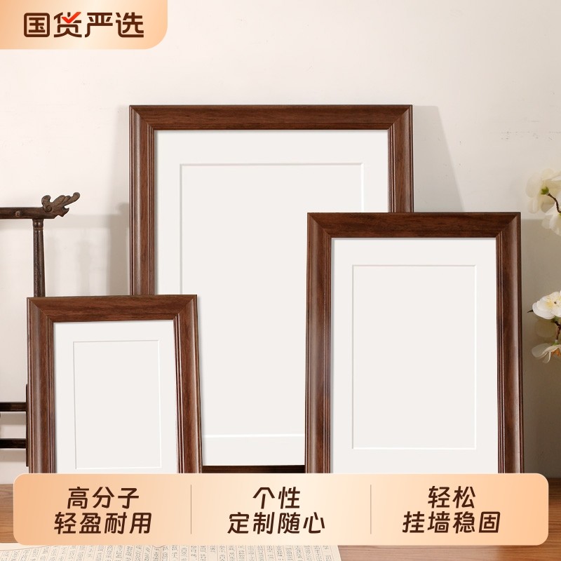 美式复古黑胡桃木色大尺寸装裱画框挂墙8开4K相框可定制16寸24寸