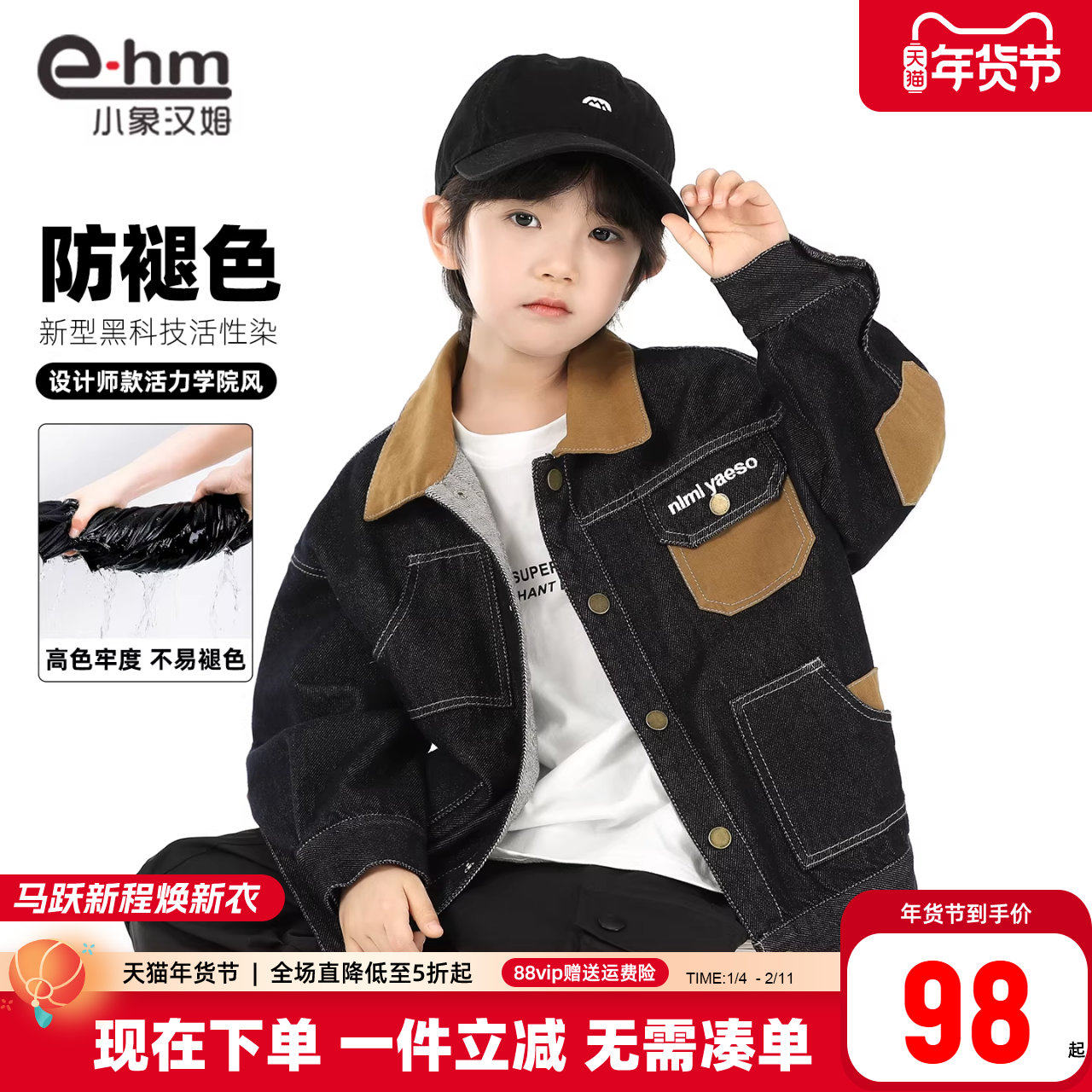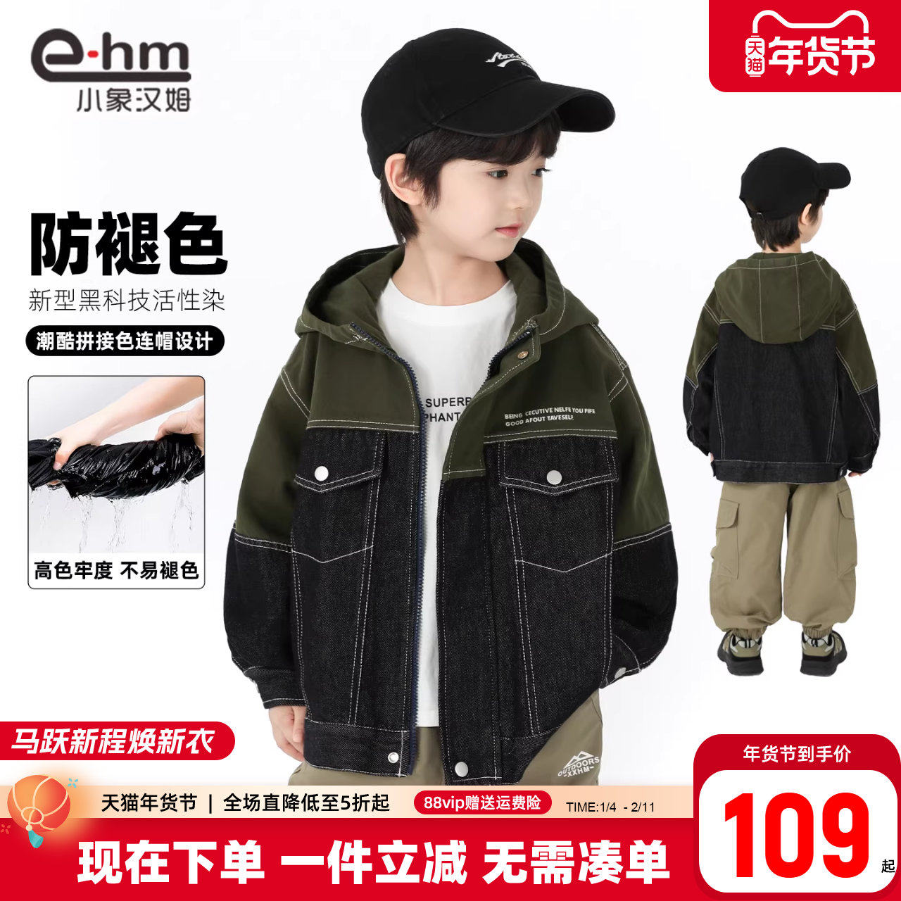 小象汉姆童装男童牛仔外套春秋款儿童连帽牛仔衣2025秋装新款韩版
