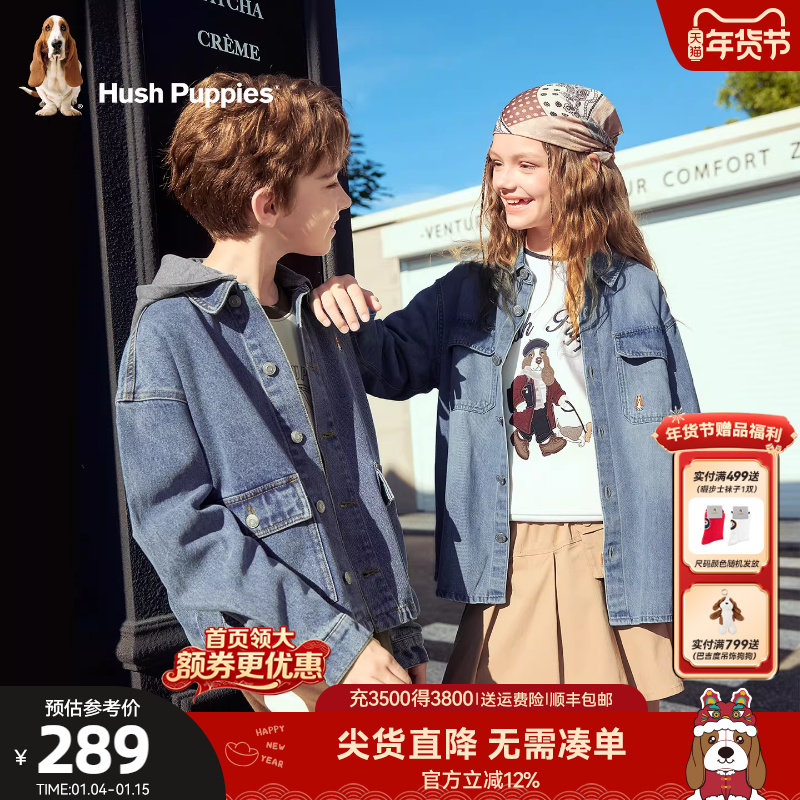 暇步士童装儿童牛仔外套春秋新品男童休闲女童上衣宝宝中大童外套
