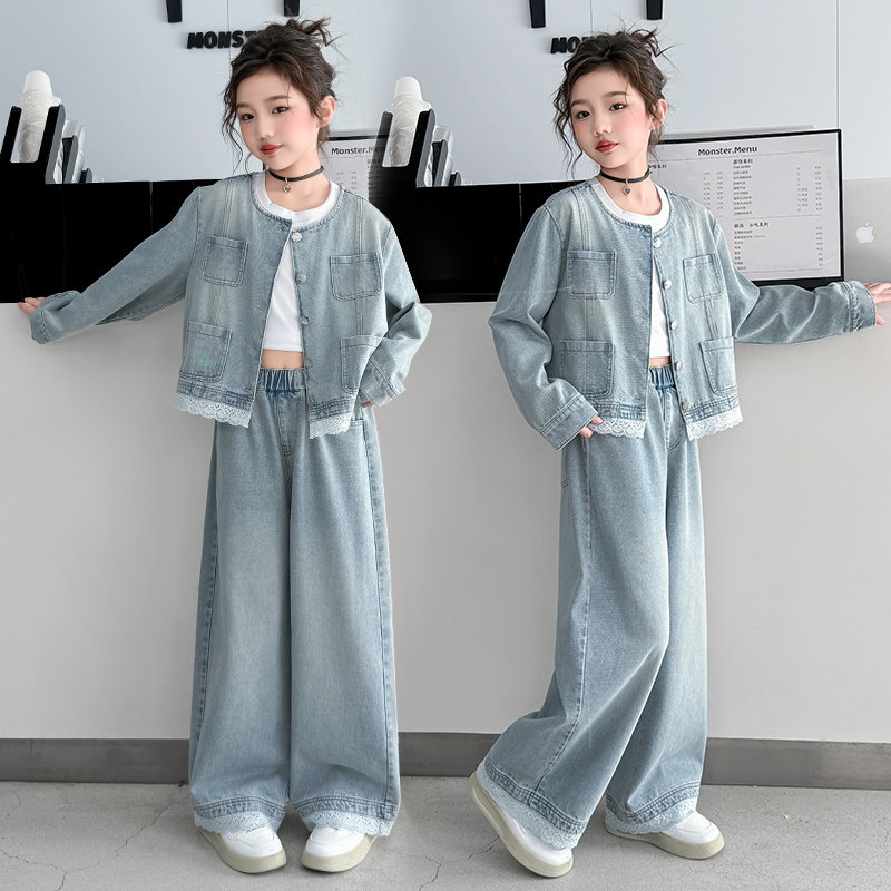 法国Uamtor女童2025秋季新款休闲套装儿童时髦童装牛仔外套两件套