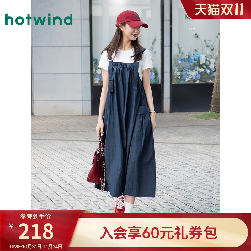 马登宽松吊带叠穿工装背带连衣裙高收腰A字半身长款伞裙子女士秋