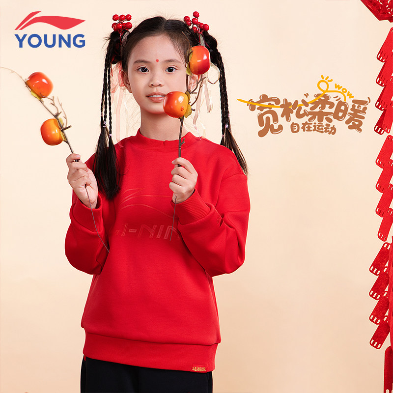 李宁儿童卫衣女童运动休闲新款加绒百搭宽松舒适亲肤套头学生上衣