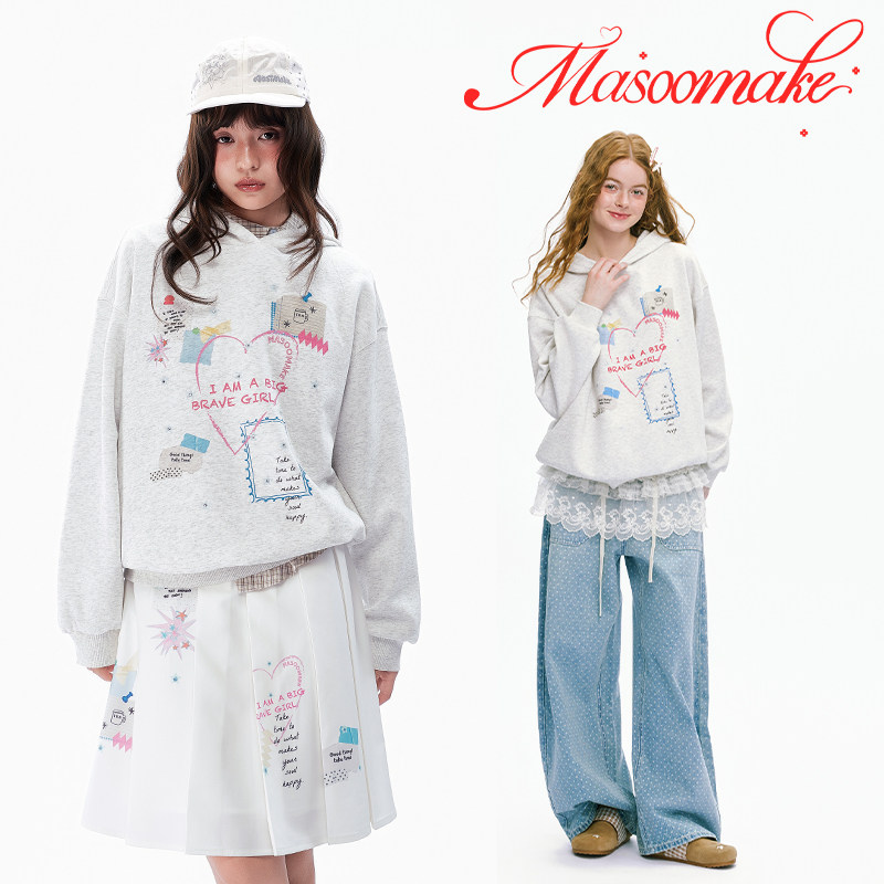 老玛儿春季时尚印花连帽卫衣2026年新款宽松百搭休闲学生套头上衣