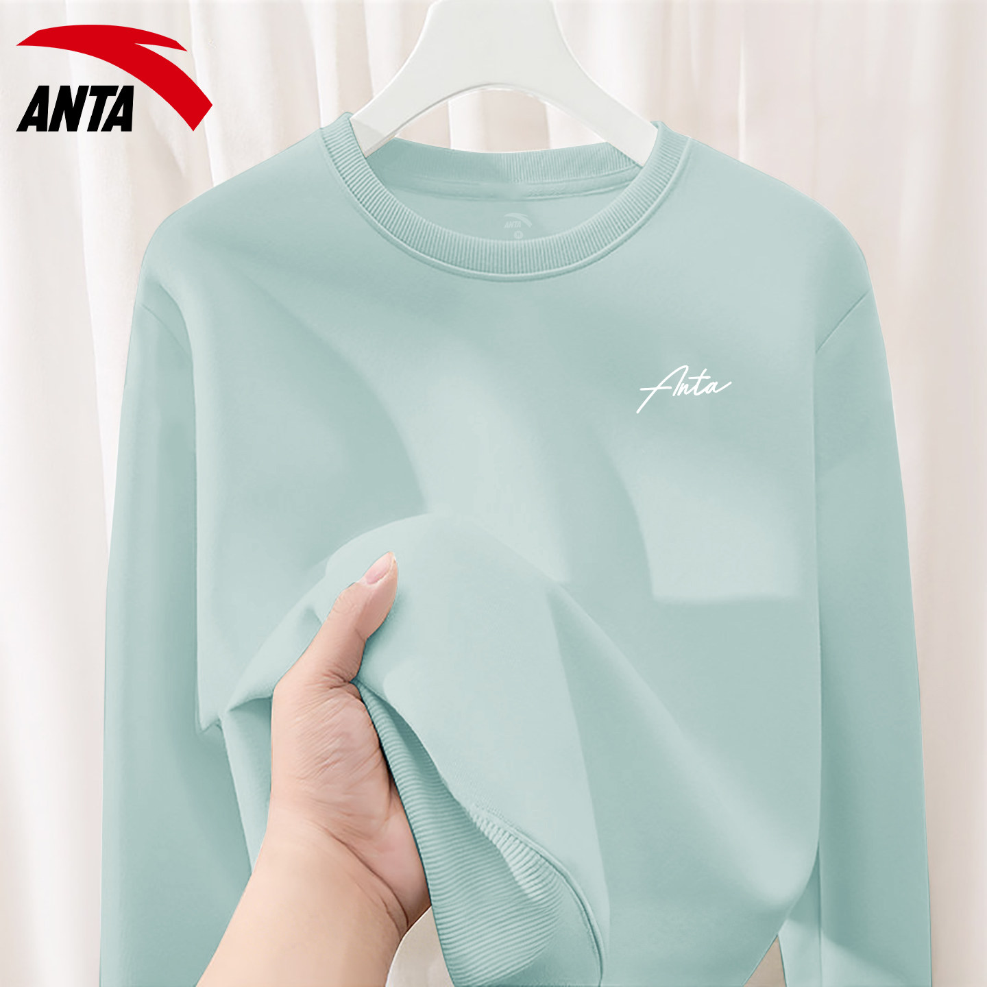 安踏圆领卫衣女学生春春季宽松简约百搭内搭运动休闲打底套头上衣