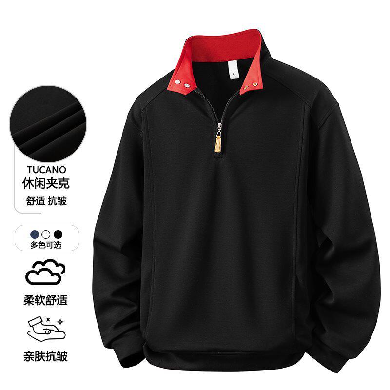 【M-8XL】半拉链春夏立领拼色领口卫衣男女宽松套头重磅百搭学生