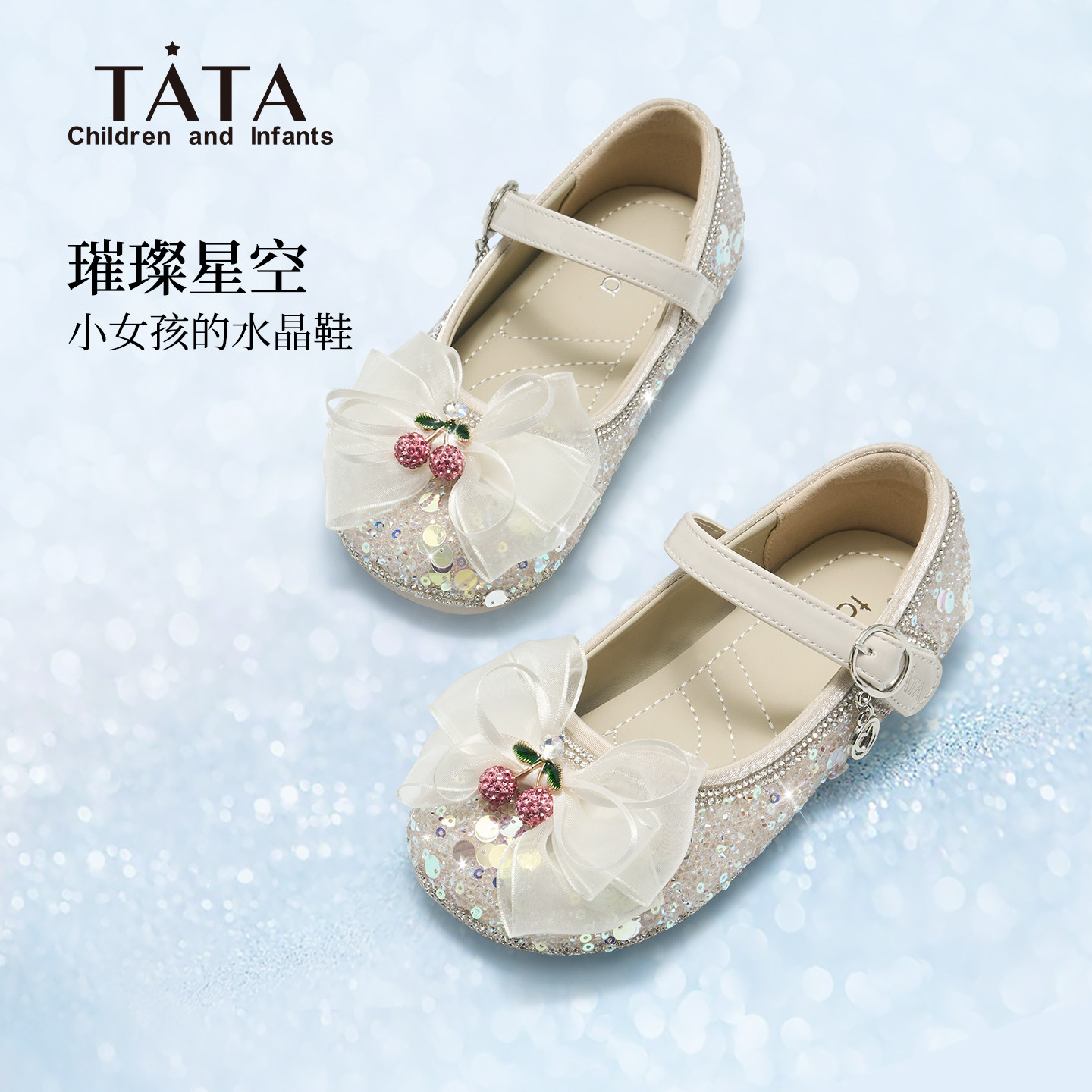 tata他她童鞋女童公主鞋透气艾莎女宝宝单鞋儿童小女孩闪闪水晶鞋