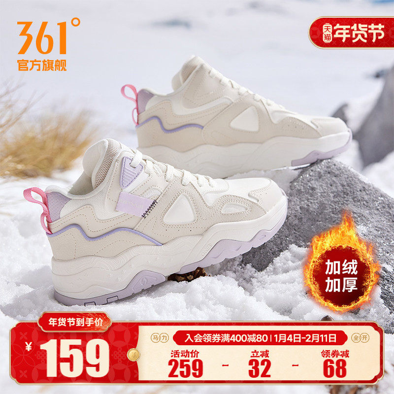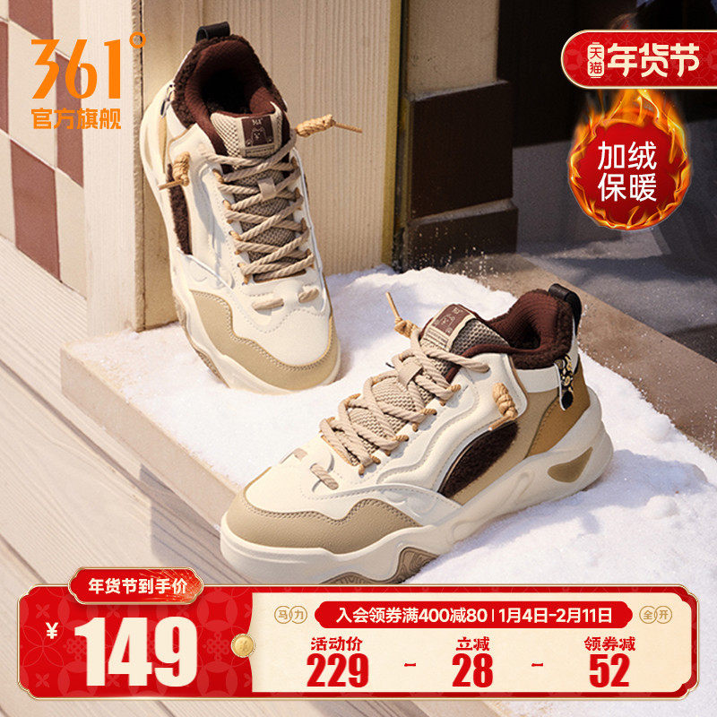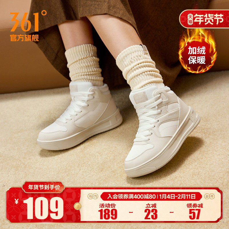 骨头鞋361加绒女鞋运动鞋2025冬季新款加毛休闲鞋大棉鞋高帮板鞋