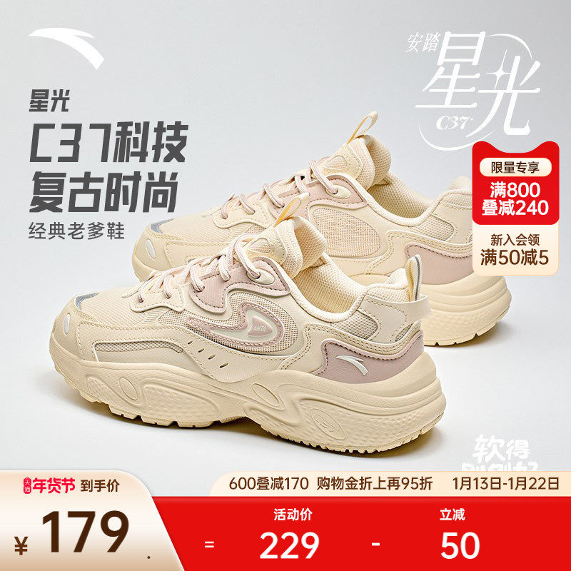 安踏星光丨厚底增高休闲鞋女鞋冬季加绒保暖运动鞋潮流百搭老爹鞋