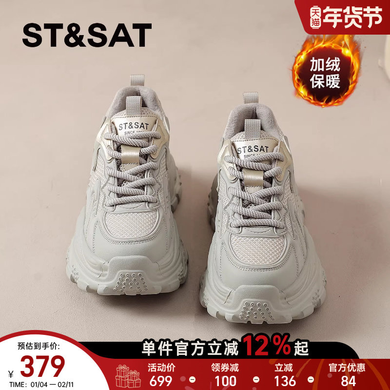 星期六厚底德训鞋女2025新款冬季加绒保暖女鞋时尚百搭休闲运动鞋
