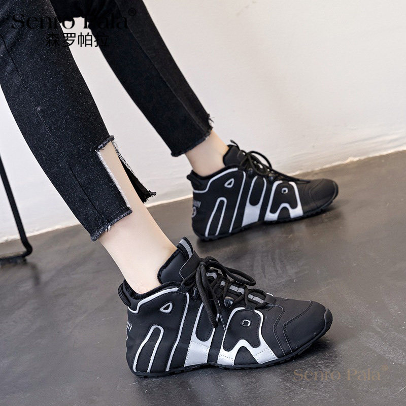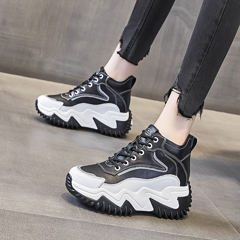 森罗帕拉厚底高帮鞋女秋冬季ins潮内增高黑色老爹鞋加绒运动女鞋