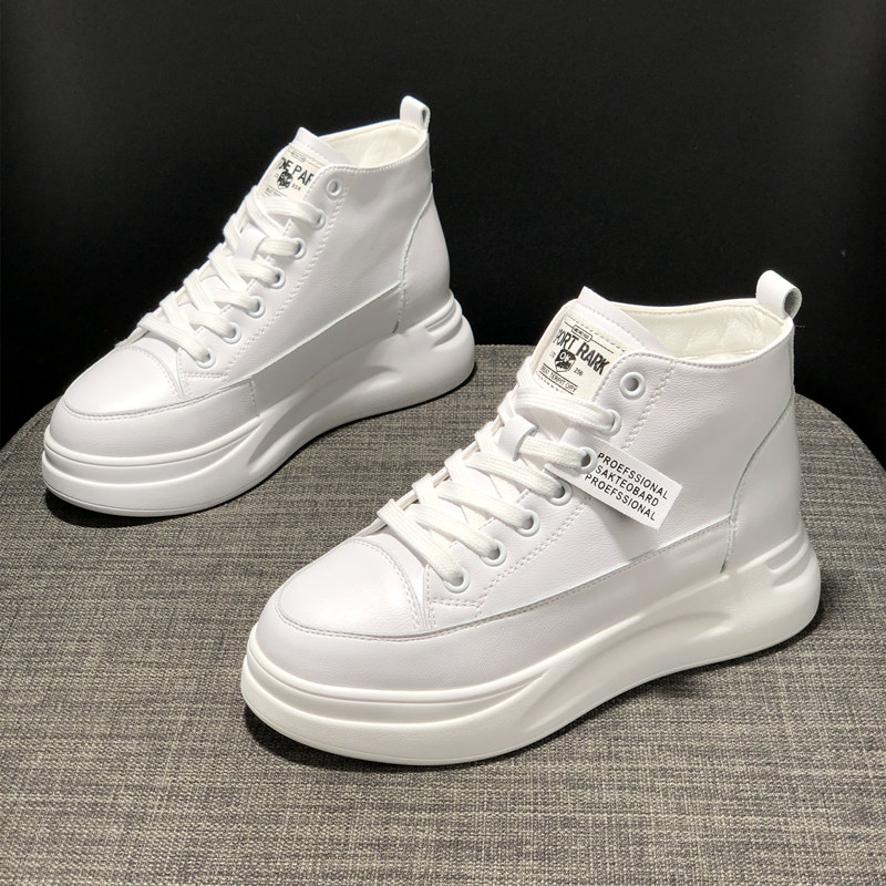真皮高帮鞋女2021新款秋季内增高厚底加绒运动女鞋冬季爆款小白鞋