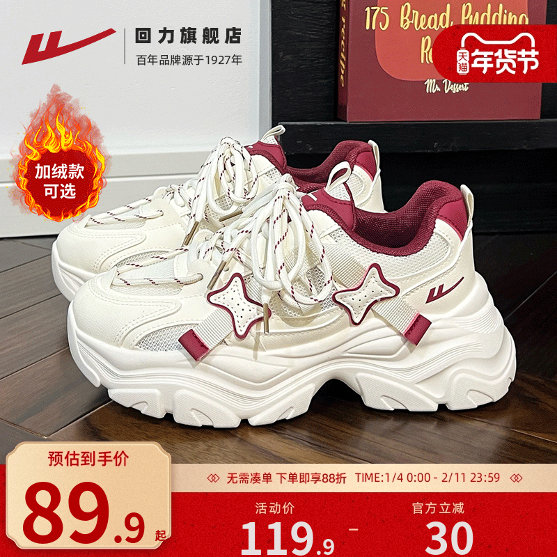 【迪丽热巴同款】骆驼银月老爹鞋女厚底增高女鞋冬季加绒运动鞋子