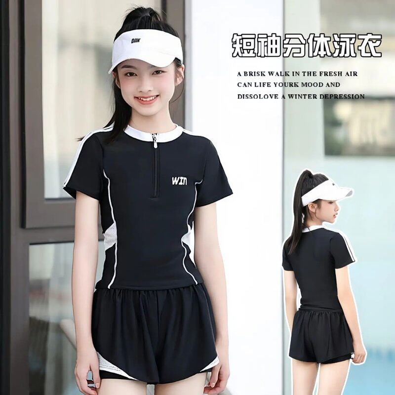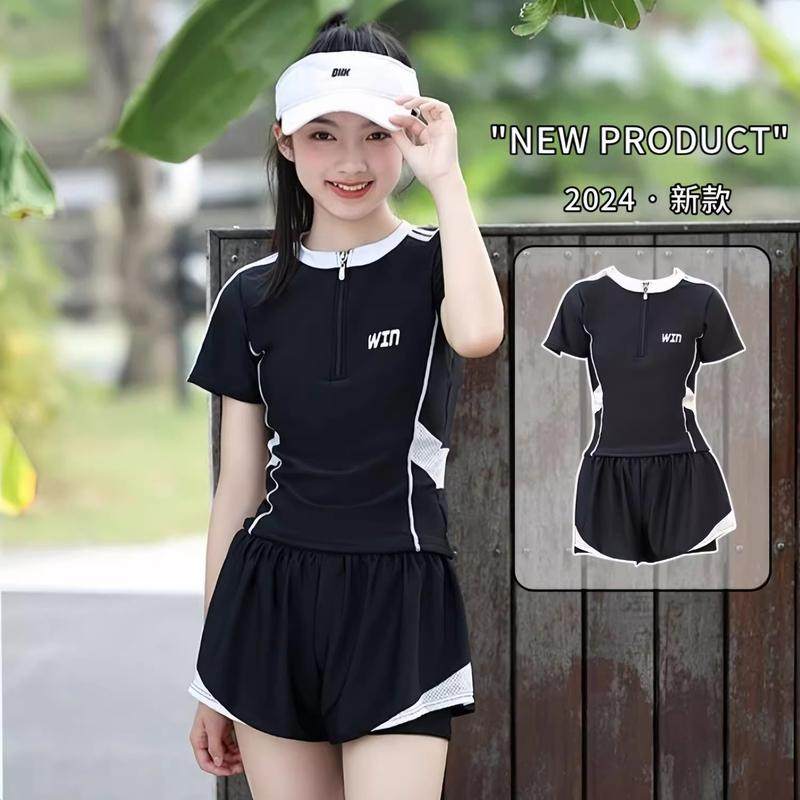 女大童泳衣2024新款儿童中大童初中生中生保守防晒速干两件式泳衣