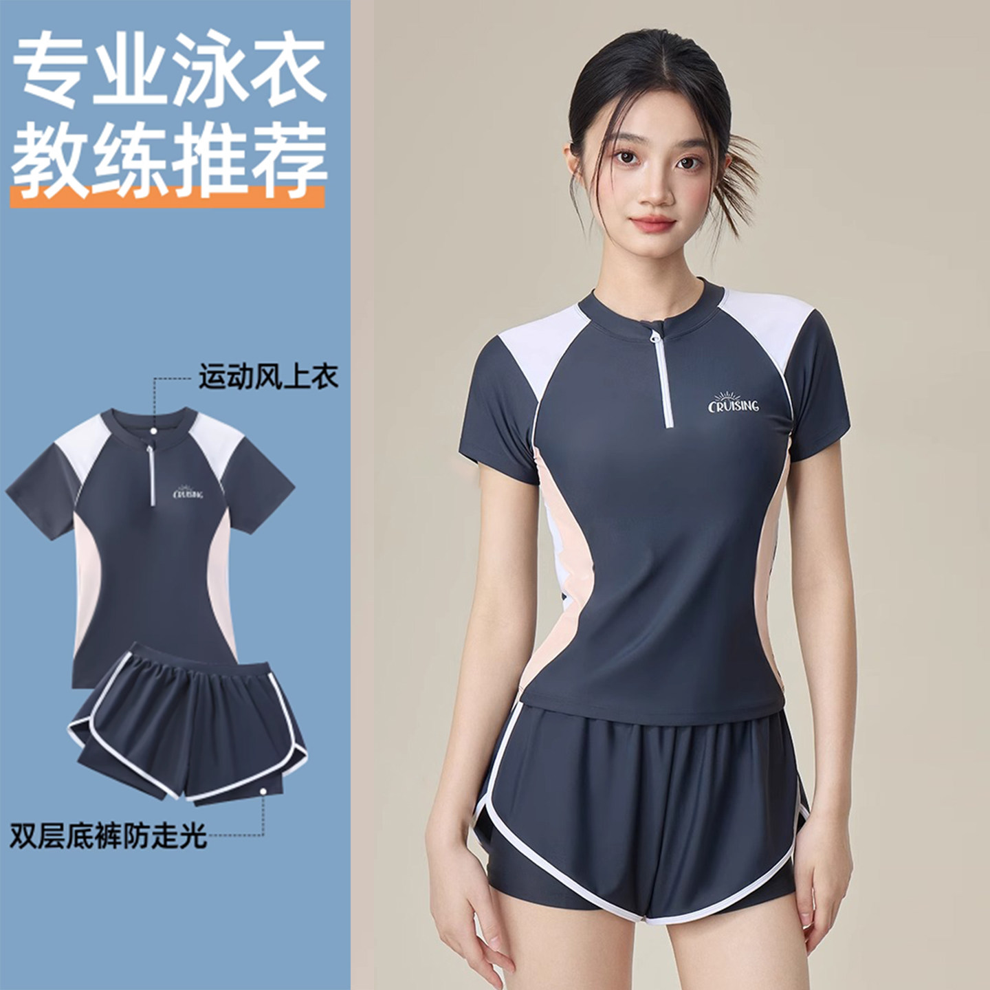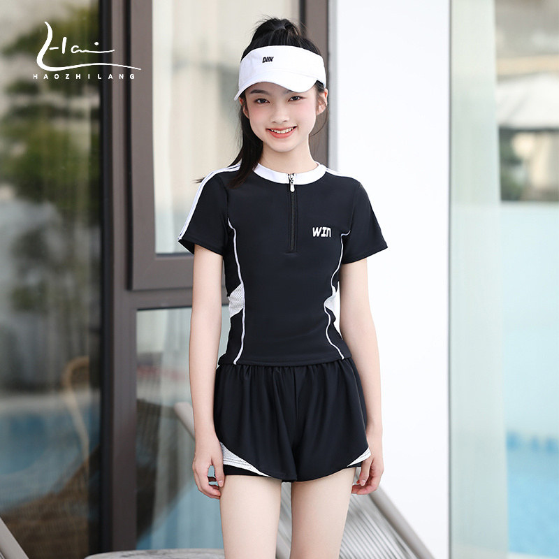 女大童泳衣两件式保守游泳馆竞速z女孩初高中生泳装青少年12岁带