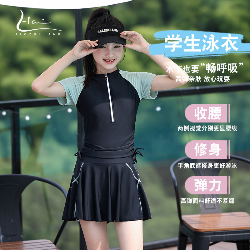 女大童泳衣女孩2025新款青少年初高中学生平角保守裙式分体游泳装