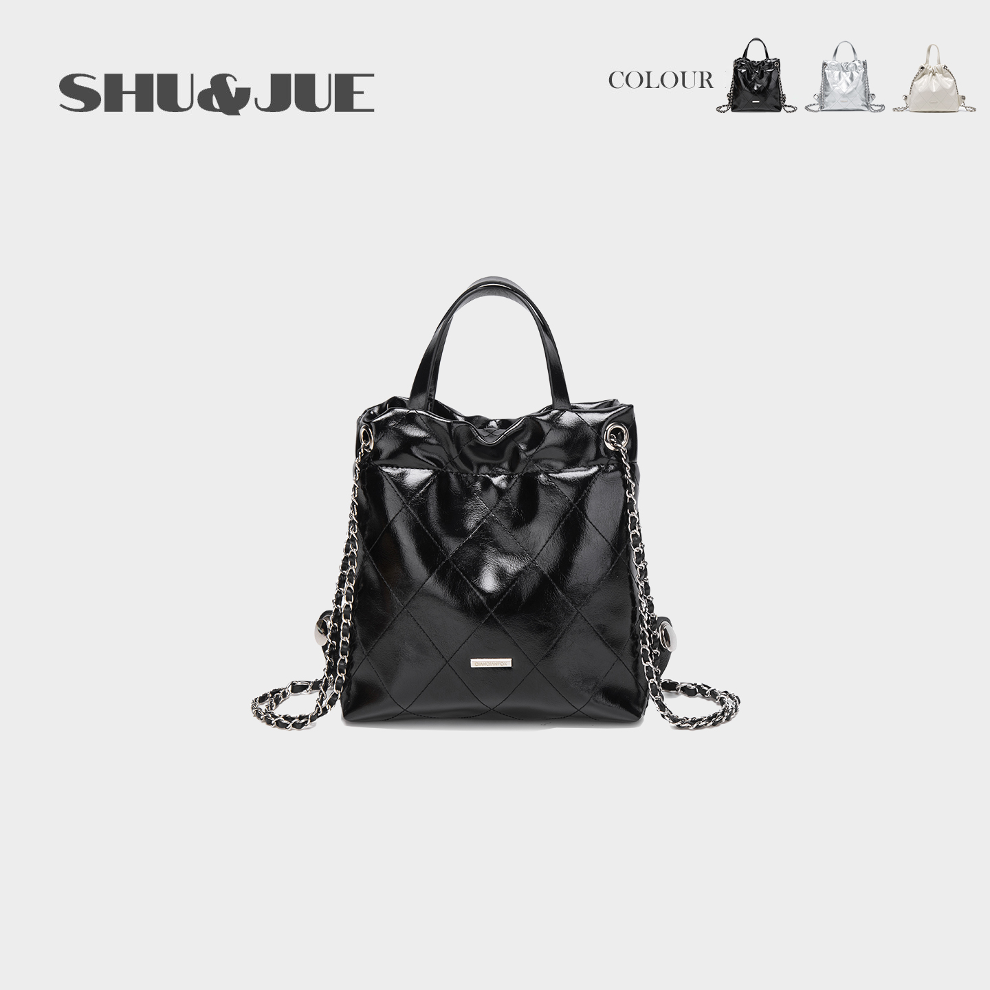 小清新女生时尚小香风双肩包高级感软皮菱格链条包银色青春小背包
