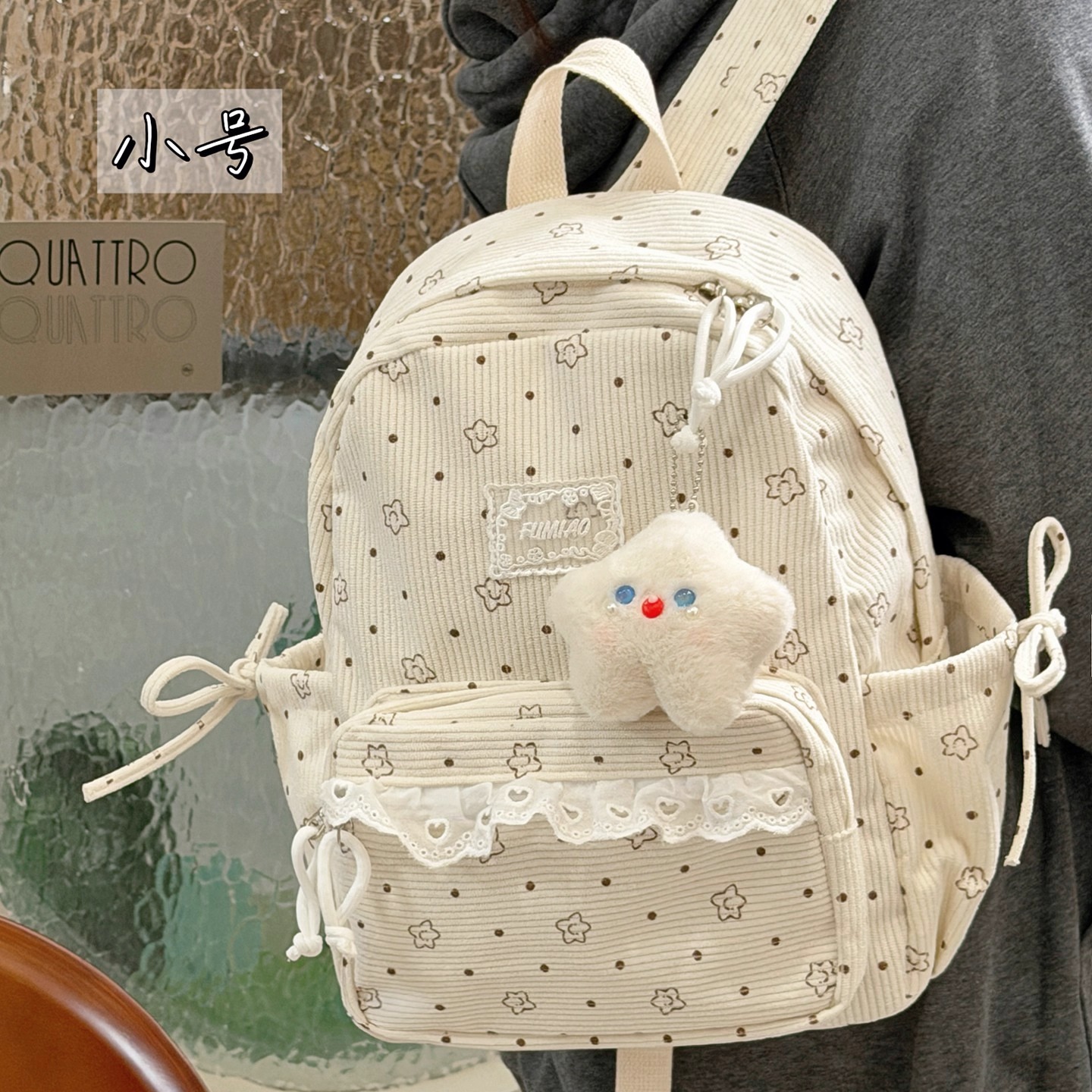 灯芯绒可爱少女心双肩包 韩系ins小清新初高中学生书包女轻便背包